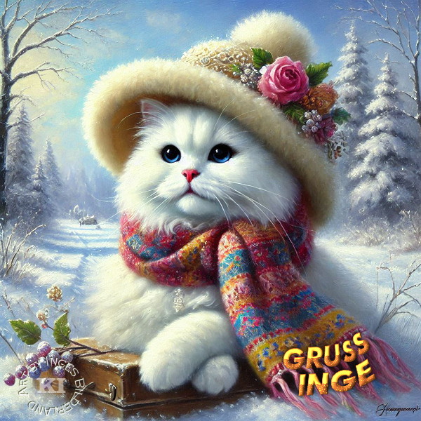 Liebe Helga mit Cats, nun hat der Winter doch Einzug gehalten mit Schnee und Eis und hat uns ordentlich im Griff.Ich hoffe es geht Dir gut, pass gut auf Dich auf. Ein schönes Wochenende wünscht Dir aus Berlin Deine Net-Freundin Pusteblume